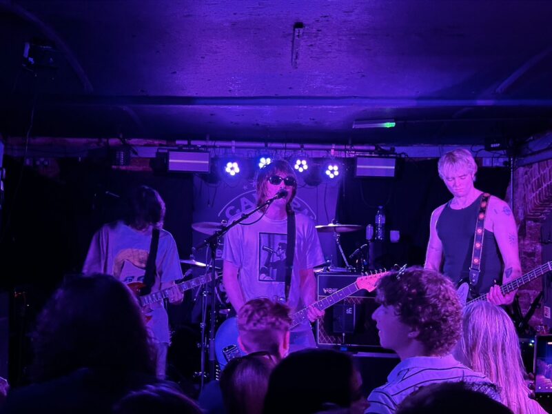 Headliners Die Twice, no strangers to Cavern, played old favourites like “Paris” and “Evelyn,” as well as their dynamic new material. Villanelle were last, and, in true rockstar fashion, missed almost every other set. Villanelle is a 3-piece band composed of Gene Gallagher (vocals, guitar), Ben Taylor (guitar), and Jack Schiavo (bass). They’re London-based and gained traction by supporting Liam Gallagher of Oasis on his arena tour in 2024.