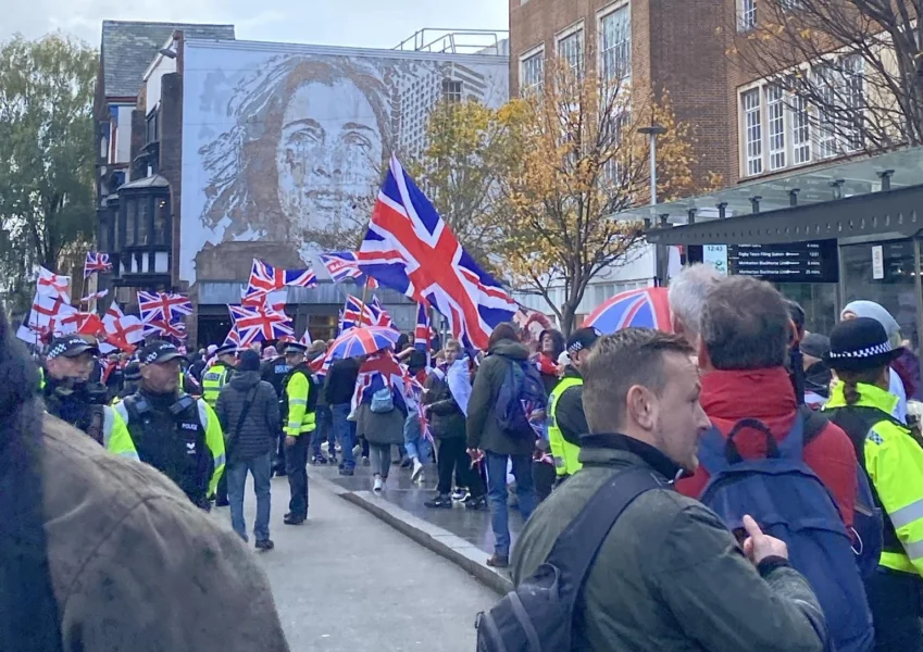 Describing itself as “a movement dedicated to the preservation and advancement of the United Kingdom’s values, culture, and heritage”, supporters of British Unity marched with St George’s flags and Union Jacks in tote, along with chants and signs about stopping the boats and opposing digital ID cards.